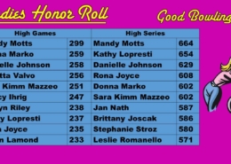Monthly Honor Roll showcasing our talented, dedicated bowling regulars.